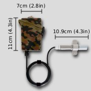 11cm x 7cm x 3cm (4.3in x 2.8in x 1.2in); weatherproof |